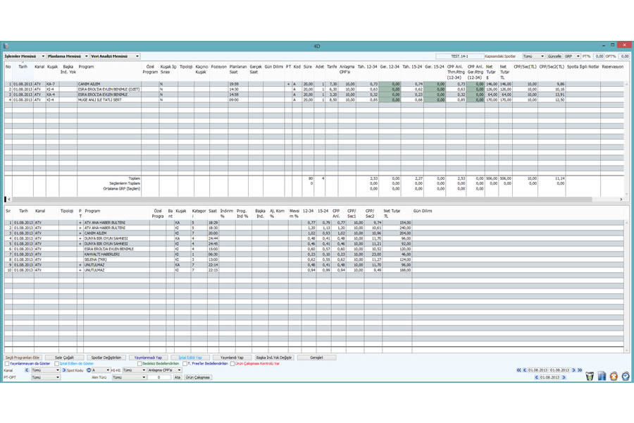 Günlük ekran - Günlük olarak spotların dağılımı ve özellikleri belirlenir.