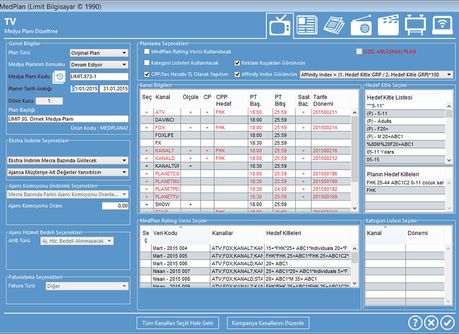 Fatura ekranı - Medya sektöründe kullanılan tüm fatura türlerinde fatura kesilebilir.