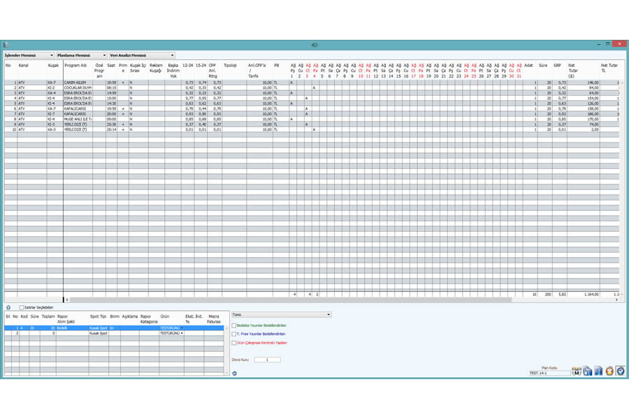 Günlük ekran - Günlük olarak spotların dağılımı ve özellikleri belirlenir.