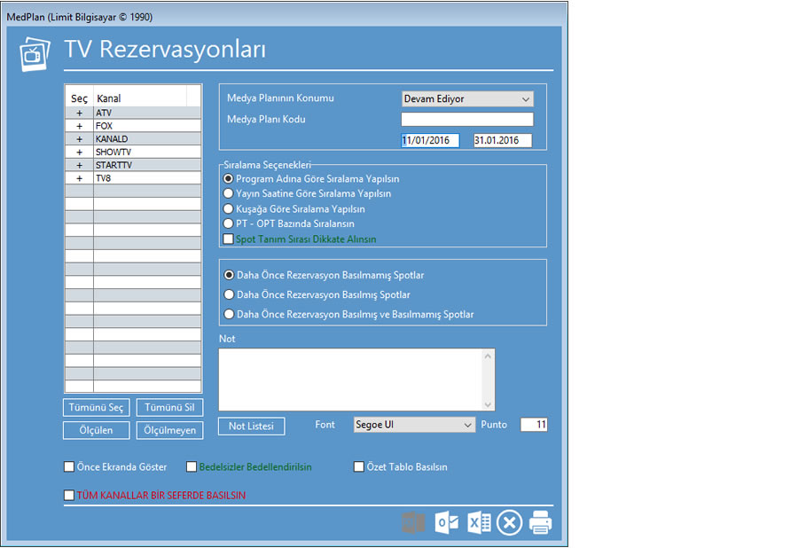 Rezervasyon ekranı - Mecralara, MedPlan üzerinden rezervasyon bilgisi gönderilir.